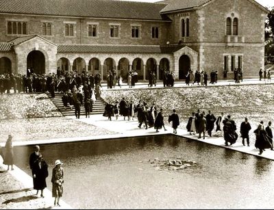 The University of Western Australia in Crawley on the border of Nedlands, was vested by an act of the Western Australian Parliament in February 1911. The University began first teaching students in 1913. The original Campus was situated on Irwin Street in the centre of Perth and was made up of several buildings located between Hay Street and St George's Terrace - known back then as “Tin Pin Ally” as many of the buildings featured a corrugated iron roof.